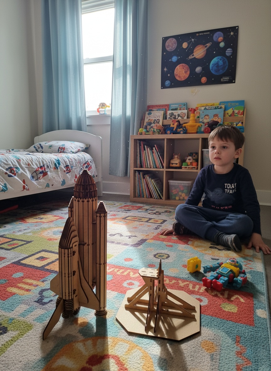 Lesena raketa je kompleksna sestavljanka zasnovana za mladostnike, starejše od 12 let. Sestavljanje zahteva natančnost, potrpežljivost in nekaj ur časa, saj je za obstojnost konstrukcije potrebno tudi sprotno lepljenje z lepilom Mekol Creative. Preko igre bodo otroci in mladostniki krepili svoj kognitivni razvoj in druga področja: