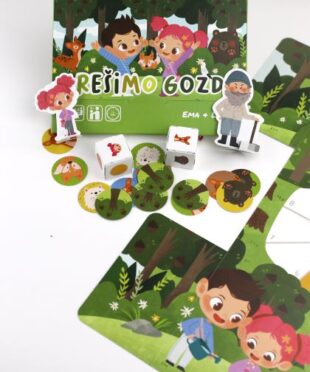 Barvita, papirnata in poučna družabna igra brez nepotrebne plastike in embalaže. Oblikovana in izdelana v Sloveniji. Družabna igra Rešimo gozd je zasnovana kot sodelovalna igra, kjer se vsi igralci trudijo doseči isti cilj, tj. rešiti gozd pred lakomnim gozdarjem in pomagati gozdnim živalcam ohraniti dom. Idealna za vsako torbico, nahrbtnik ali kovček.